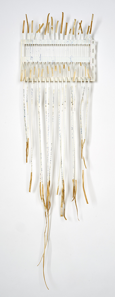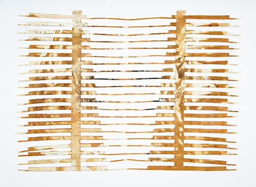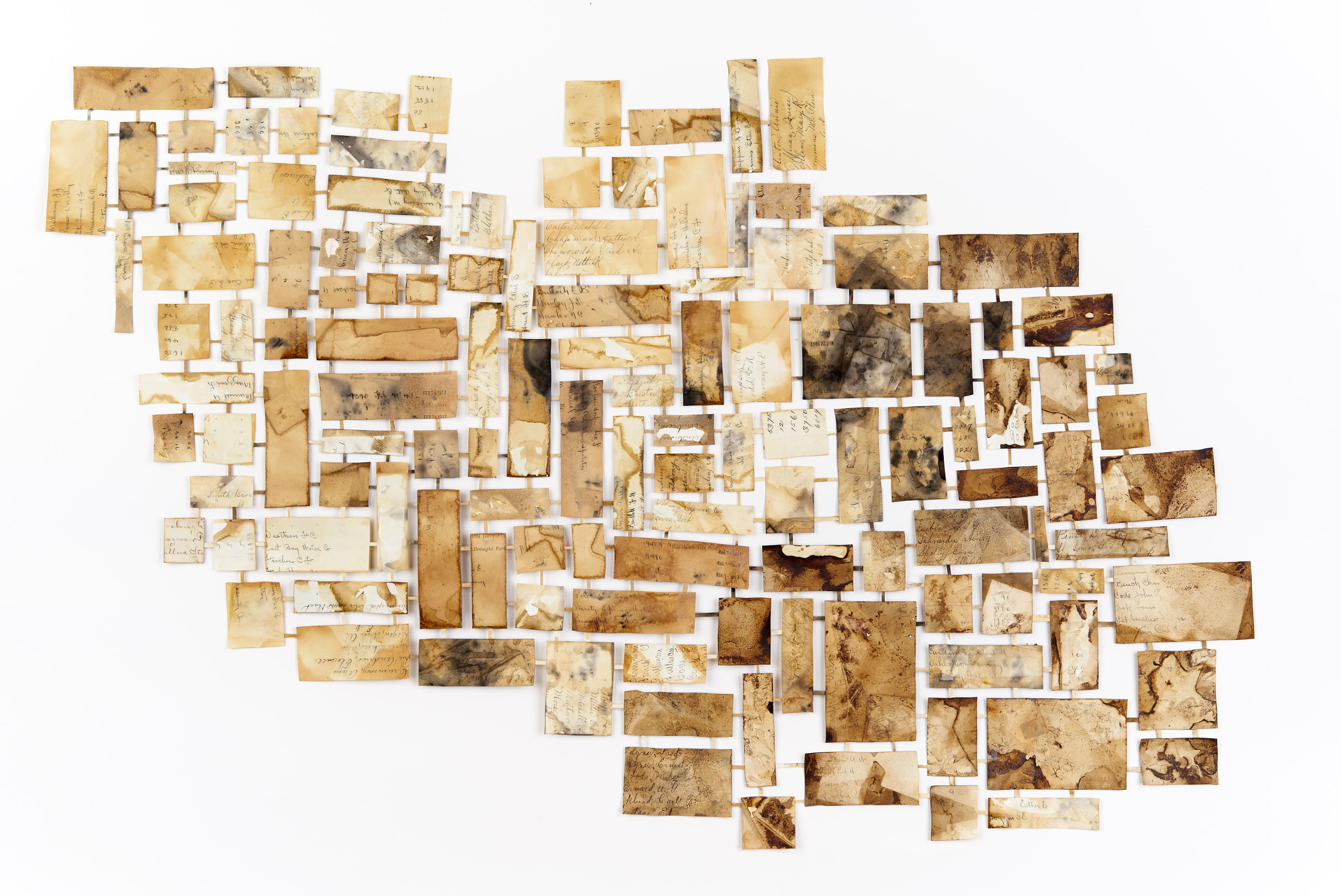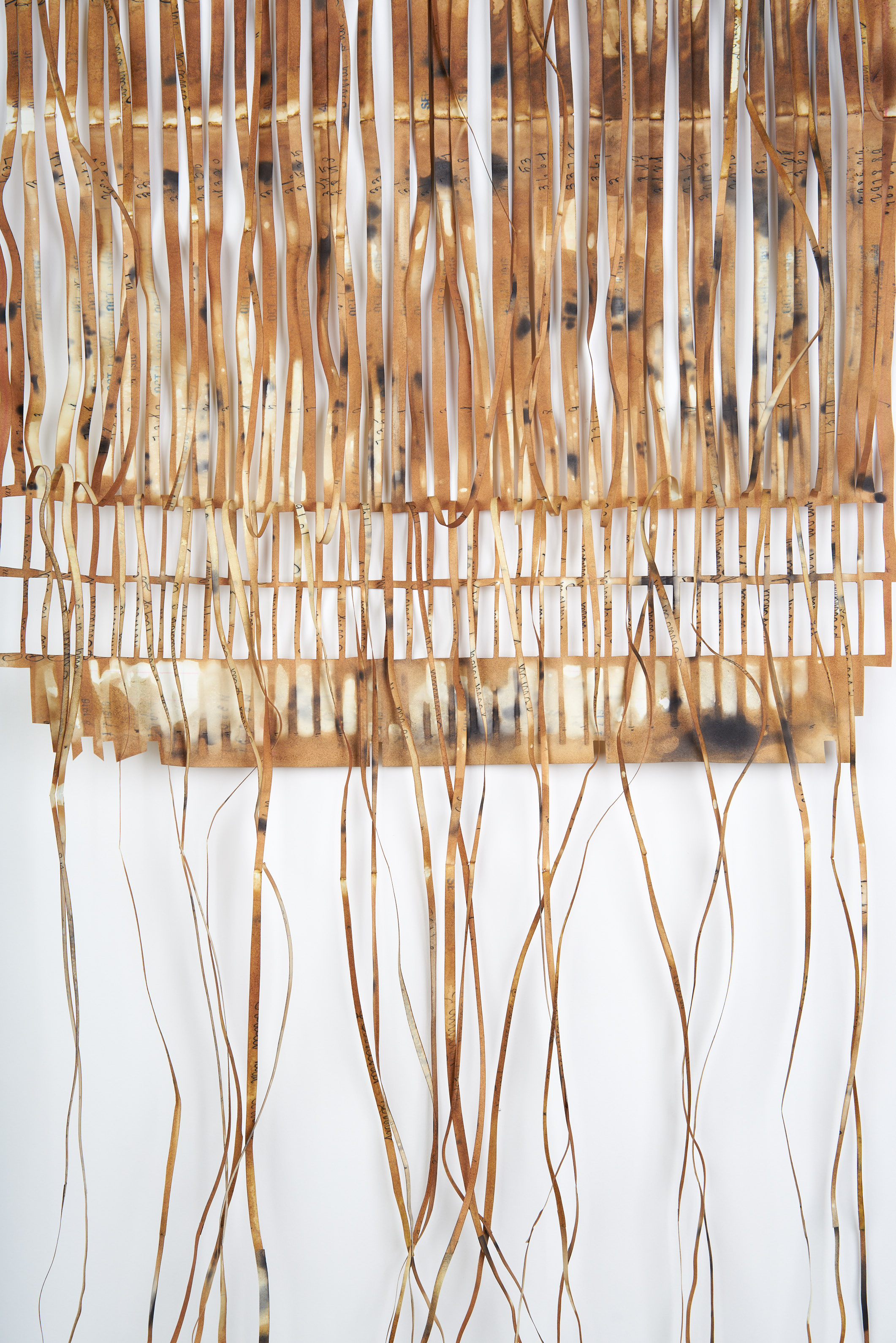 Mixed Metaphor 40 x 17 x 3 in. Ledgerbook Paper, tea dye.