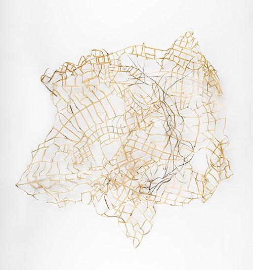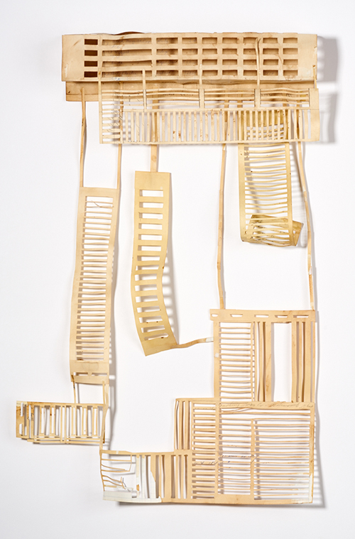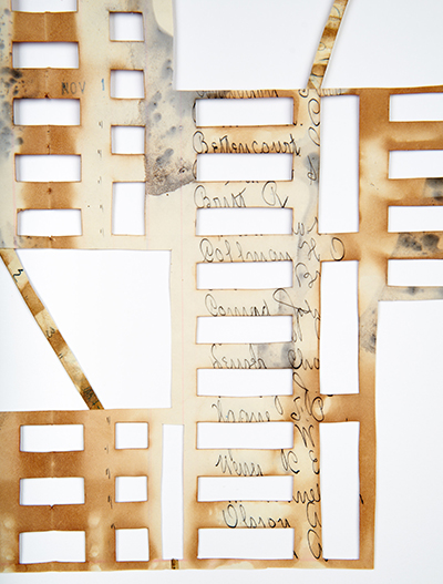 Everywhere... signs, marks, evidence of existence, the laws of gravity, character, history, and imagination. Cracks in the asphalt that hint at some shift underneath. Pawprints in mud, dust on a web. There are inscriptions made by wind and sand, time and fire, or just tales told by mold or neglect or rubber tires on a curve of asphalt. The marks I make - cuts, holes, burns, stains or stitches in paper - are evidence of my truths: they are a code, a rhythmic, enigmatic, asemic language as well as a map to my subconscious meanderings.
