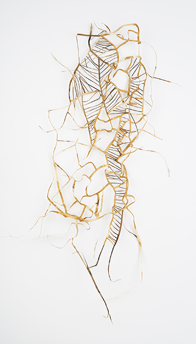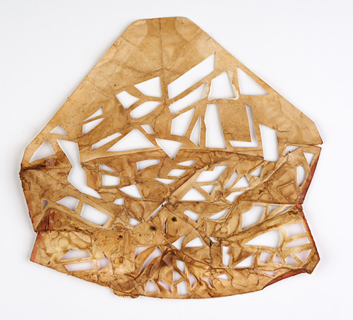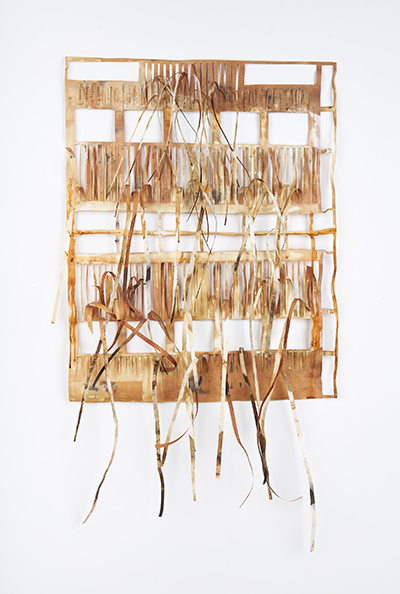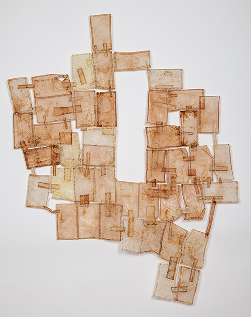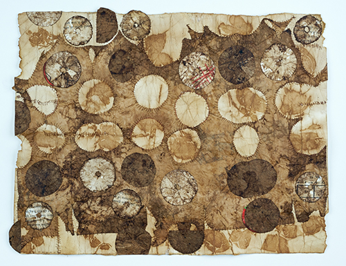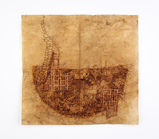 Integumentary 12 x 13.5 in. tea-dyed paper.
