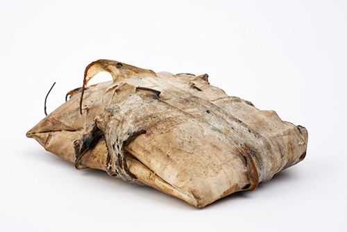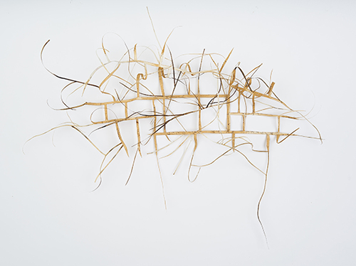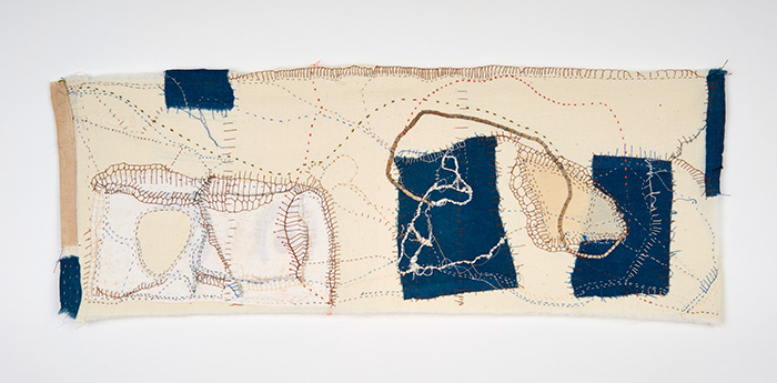 I start with the chosen material and see where my fingers take me, with minimal interference by conscious planning or rigid organization. I try to balance meticulous detail with rough gesture. An almost daily practice, the rhythmic movement of kneading and stitching…what emerges is a glimpse at a subliminal manuscript.
