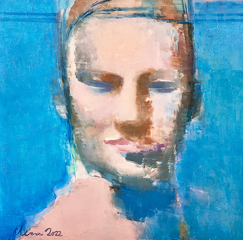 BEYOND BLUE (Face) 15x15", oil on paper on panel $5,000 [Framed] |