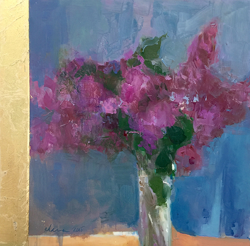 Color Purple 12.5x12.5, oil & gold leaf on mylar mounted on panel. [Framed] (Sold) |