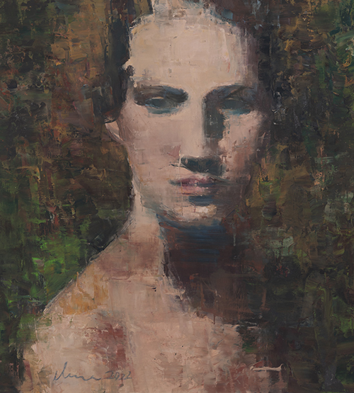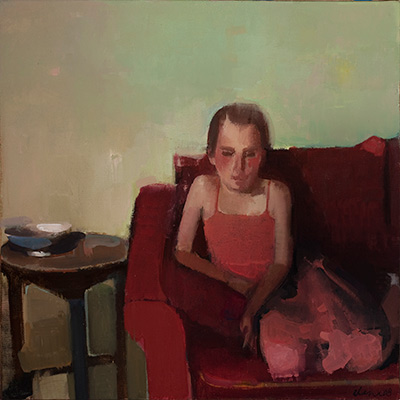 GIRL IN PINK 21.5x16", oil on mylar mounted on panel $5,200 [Framed] |