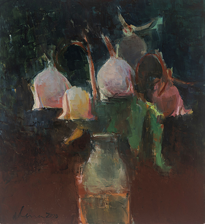 WILTED (MILK BOTTLE VALENTINES) 16x14.5", oil on mylar mounted on panel $5,200 [Framed] (Sold) |