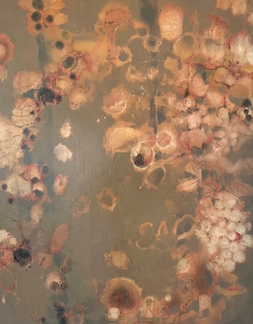 The abstract work begins from nothingness, wordless as with music... an improvised, intuitive, process-oriented practice with works evolving from previous sessions, attentive to chance phenomenal occurrences...sometimes then erased, scrubbed, layered again, sanded... aiming towards an undirected, suggestive, perceptual experience.
